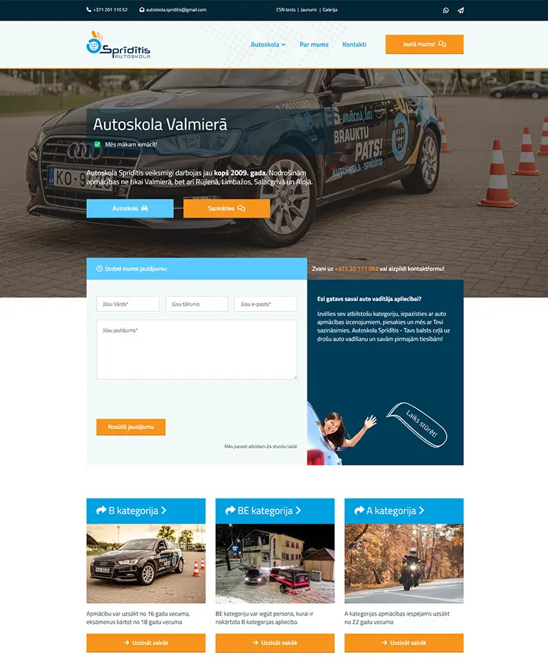 Izstrādājam saturu, dizainu un struktūru. Pielāgojam mājaslapu mobilajām ierīcēm un sagatavojam Google redzamībai.