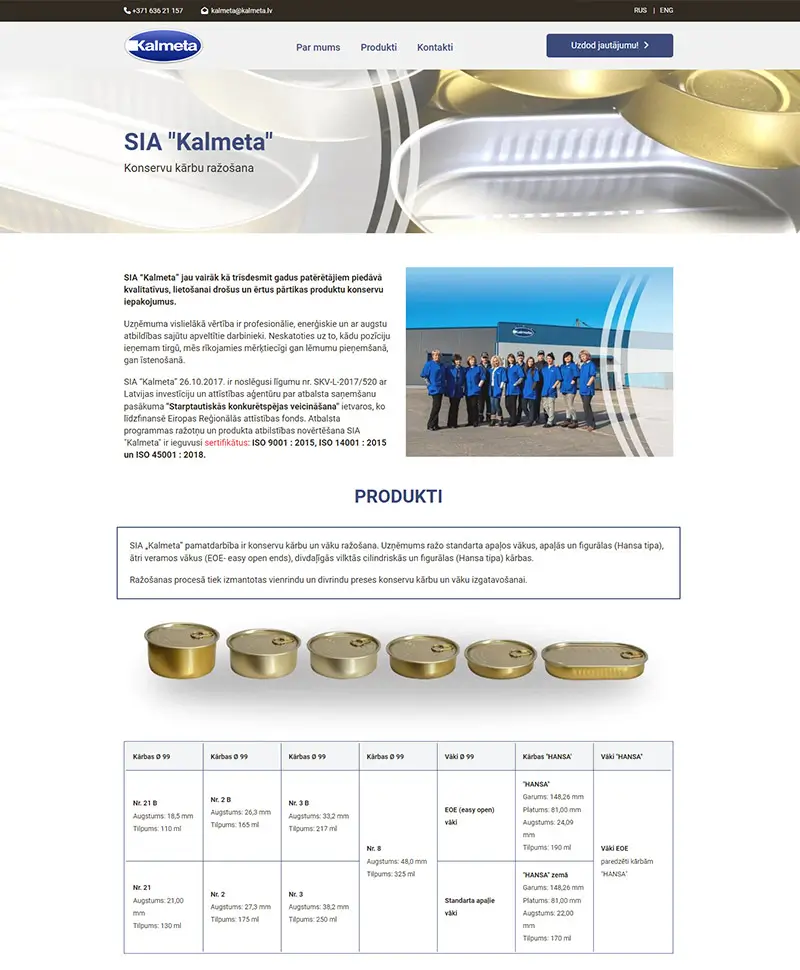 Vizītkartes tipa mājaslapa sniedz informāciju par uzņēmumu, darbības virzieniem un saziņas iespējām.